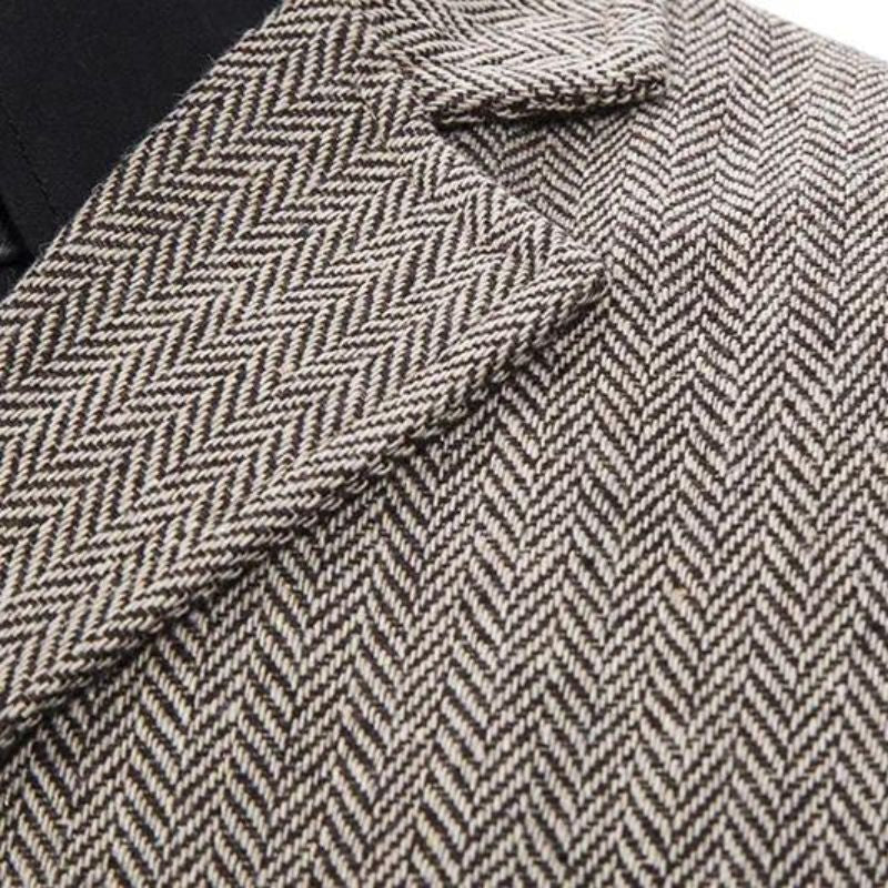 A timeless herringbone design that adds structure and sophistication to any outfit.